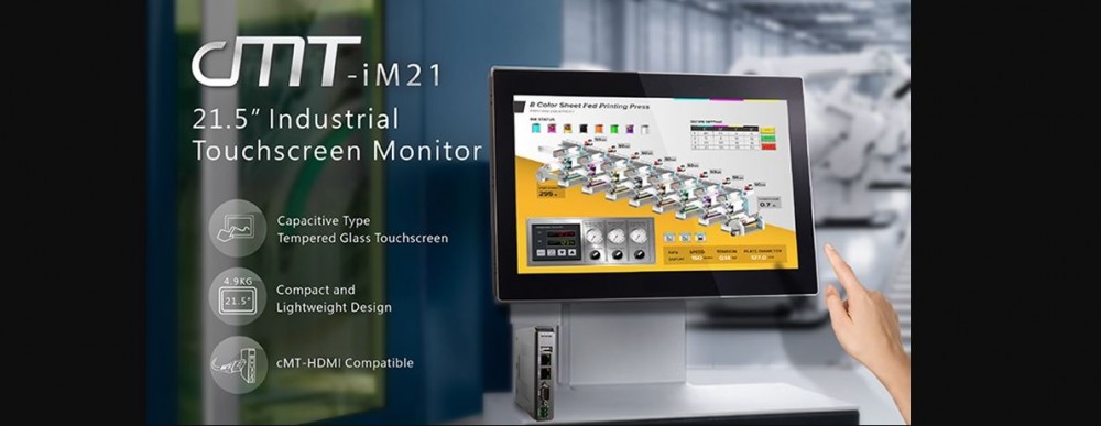 Weintek wprowadził nową grupę produktów systemów sterowania. Są to monitory przemysłowe. Pierwszym z nich jest 21,5 calowy monitor cMT-iM21.